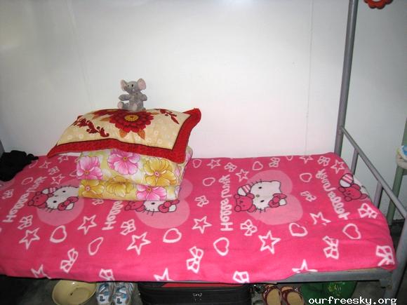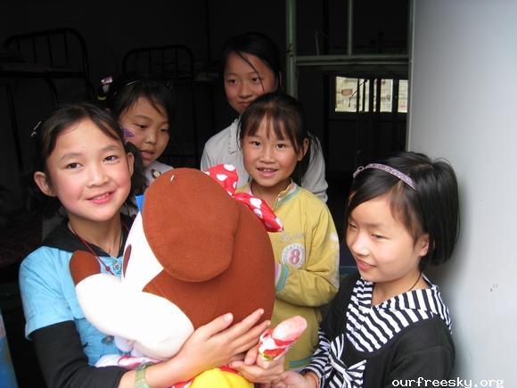 随后我们看见了几个女孩在寝室门外,便问可以看看她们寝室么,她们爽快的答应了。上下床,简单却非常干净整洁。然后我们把小黑姐专门带的毛绒娃娃(徐晶晶的两个毛绒娃娃,我们准备给青川一个,彭州一个)我们送给了她们寝室,说大家一起照顾它,孩子们都很开心:) 6KBHRt