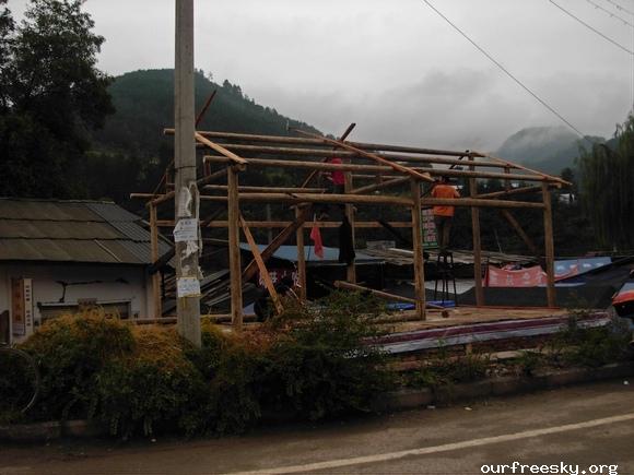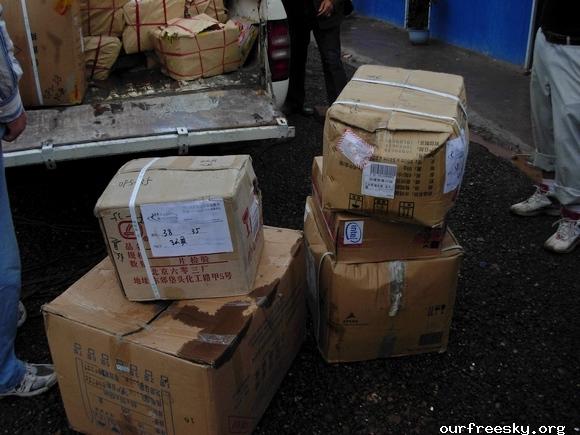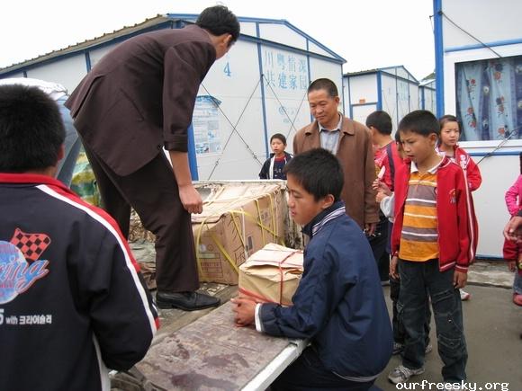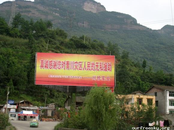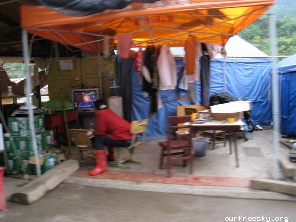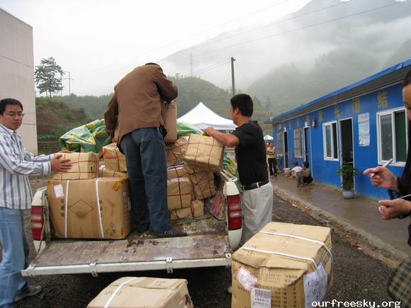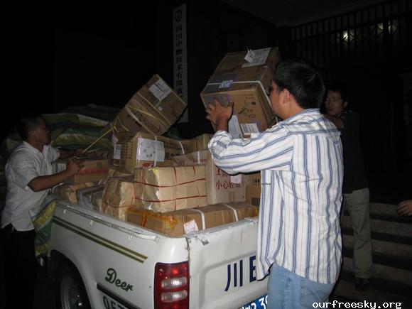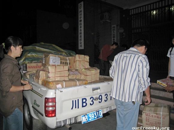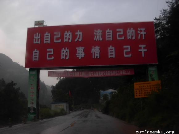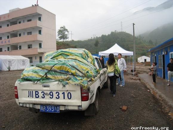 在路上,师傅建议我们既然是抗震救灾,可以出示个证明这样可以免过路费了,之前我们都不知道可以这样,还好有小黑姐之前刻好的章,并且在白纸上盖了章专程带过来让我们看看盖章的效果,这下可真派上用场了,我们就起草了个证明再写在盖有章的白纸上,嘿嘿...所以来回路上就没出过路费了。 ;S =e%:zb