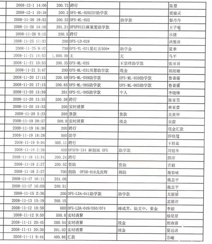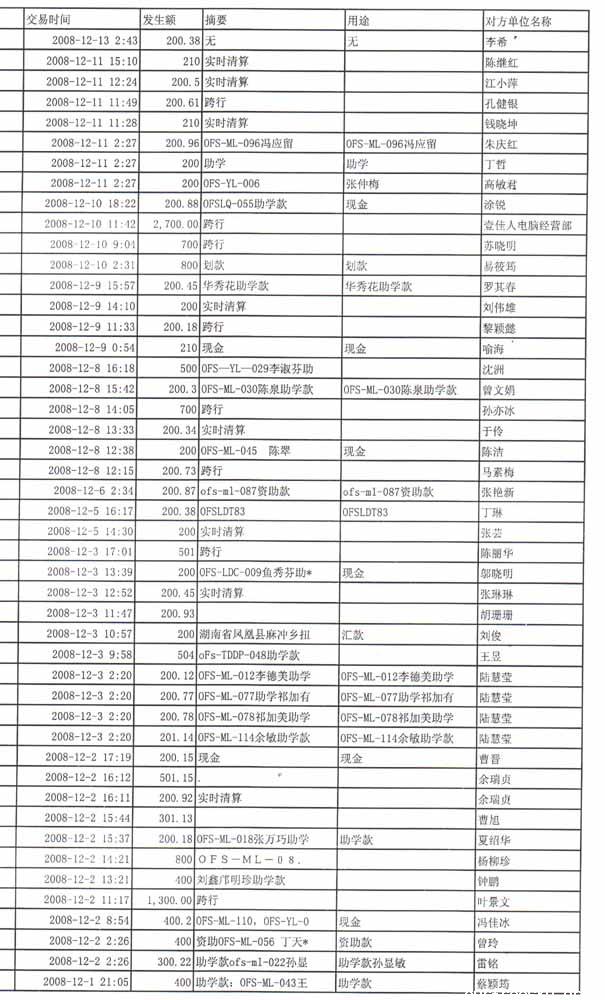 截至2008年12月13日OFS对公帐户收到助学款项清单 xBHf~:!