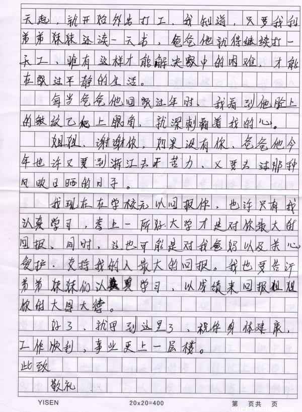 先插入一段:从去年八月回访完毕后,不知道助学部的回访资料为什么没有发给资助人。
