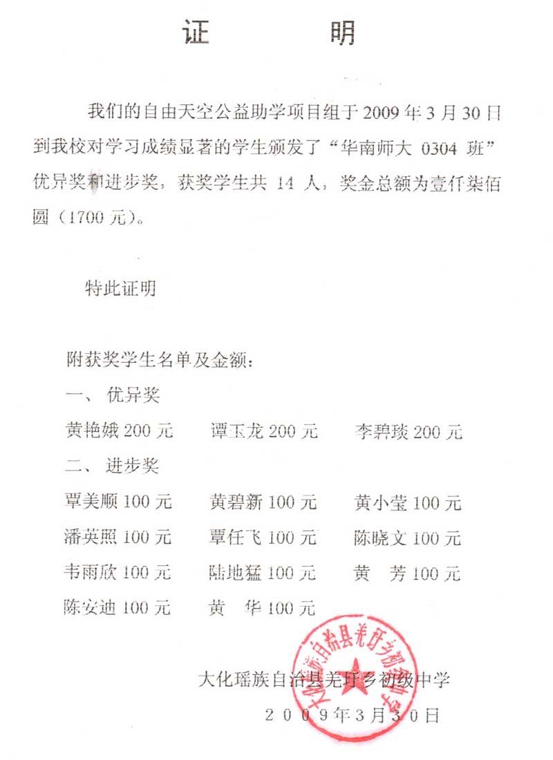 [奖学金]华南师大0304班奖发放(2009年3月) [复制链接]
