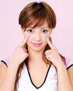 2.食指尖点按睛明穴,按时吸气,松时呼气,共36次,然后轻揉36次,每次停留2~3秒。