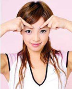 5.攒竹穴在眉毛内侧顶端。按时吸气,松时呼气,共36次,然后轻揉36次,每次停留2~3秒。