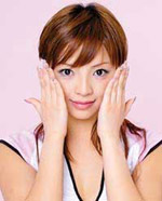 7.将两手掌心搓热,吸气,两手由承浆穴(嘴角)沿鼻梁直上至百会穴(前额),经后脑按风池穴,过后颈,沿两腮返承浆穴,呼气。做36次。