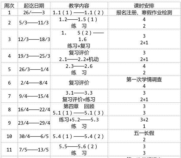 根据课本知识按照时间合理安排,需要注意有练习课、复习课和考试的安排 L /^I*p,