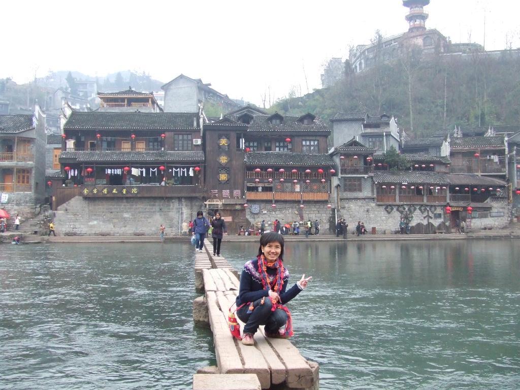 Bm%|WQK 上午到达吉首,去车站坐上汽车,好像坐了2-3个小时的车程,便到达传说中的凤凰古城。一下车,便有好些客栈阿姨来拉客,不过并没有争抢,都是很有礼貌地询问我们路线和推荐她们的客栈。最终我们跟上一个阿姨,住进江岸客栈。期间考虑了一下吊脚楼,但因为贵了约一倍的钱,便放弃了。我们住的很便宜,两人一个房间,每人25元。