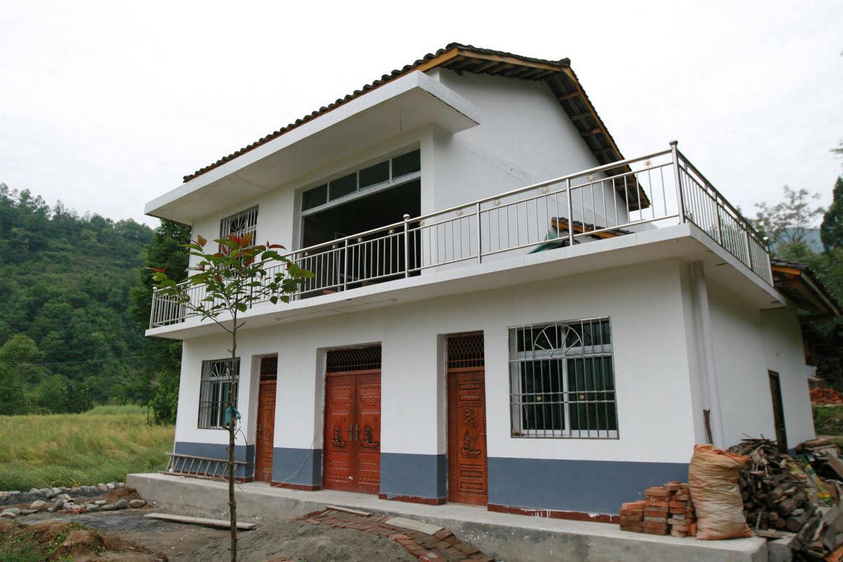 Xq.GvZS` r!O4]j_3 农民住宅:清山绿水间扎眼的是白花花的新房子,公路两旁的新房子更气派些。我们走访的37个家庭的38个学生,95%的家庭建了新房且大多数是两层楼,砖混结构。有的还地面贴地砖,墙面贴瓷砖。靠近公路的房子门前还修了水泥花坛。没贴瓷砖的房屋墙面仿瓷刷白,涂料是政府免费提供的。整体搬迁的几个组(自然村)则是统一规划建设的(统规自建),就如城市的新建社区。只有两家还住在旧房子里。其中一家自己原来在山上的房子震坏了,现在住的是买的别人家的半山腰上一栋旧房子。这房子原来的主人则在山下公路旁建了新房。