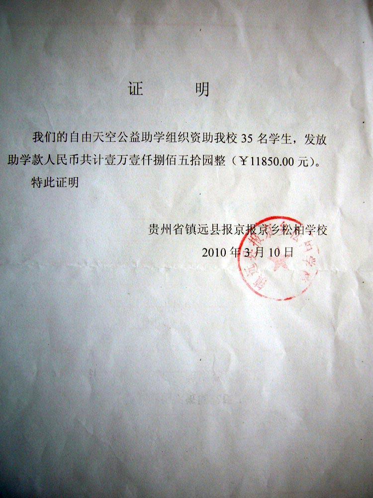 [公 示]2010年3月贵州助学汇款发放签收公示 [复制链接]