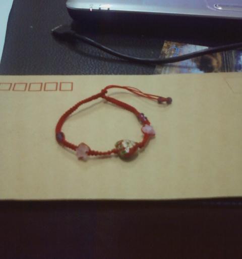 我用二根红绳把它们串编起来,(是二根喔,亲手做的喔.想了很多办法,虽然手工真正是粗糙,但也花费了一些心思,好几下都感觉没耐性了,想想是美好,又坚持下来了.)愿它能给你们带来幸运,带来富贵,带来幸福.