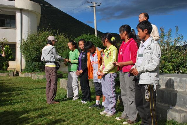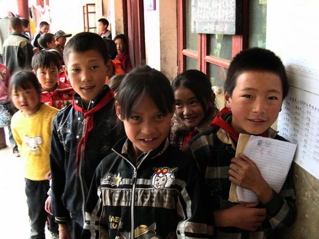 灿烂阳光一扫之前近半个月的阴雨霉靡,班车在经过闻名遐迩的长江第一湾后很快到达巨甸乡,志愿者们在简单的午餐后匆匆赶到此行的目的地—鲁甸乡。途中的风景少了一丝宁蒗山崖的峻峭和泸沽湖水的妩媚,却多了一份亚热、温寒气候带的秀丽。 t"x