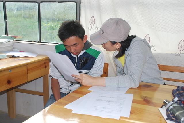 鲁甸乡中心校的杨校长已经早早等候着我们的到来,一脸的憨厚平实,很自然地流露出对民间助学的感恩和欢喜。没有过多的寒暄,发放资助款的工作就已经很快开始了(很喜欢这种务实的行为),分组(中学、小学)、付款、签收、询问、记录……所有工作在紧张中有条不紊,直至夜幕降临…… &.XlXihnt