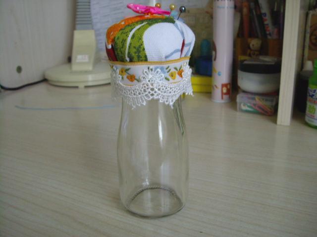 牛奶瓶小针插,可以放珠子,纽扣,针线等~~~