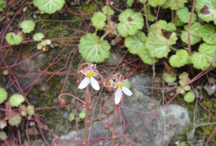 周末下村时,在一块半向阳的陡石壁上看到粉色的点点,凑过去一看:浪漫梁祝! qUF'{K
