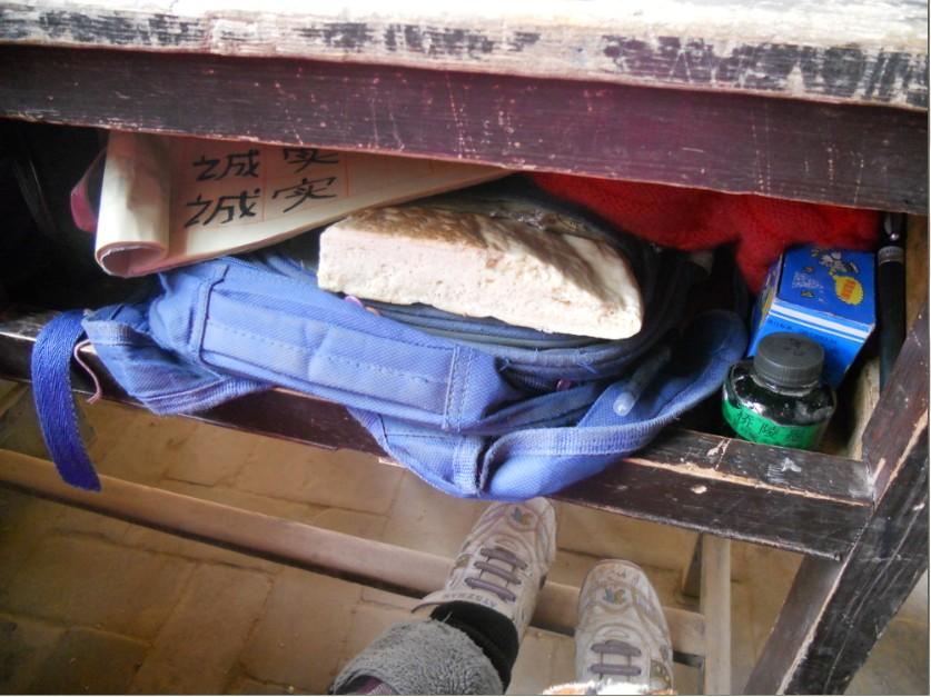 • 小女孩的桌堂,饼是她的午餐,墨汁用来练习毛笔字,还有诚实