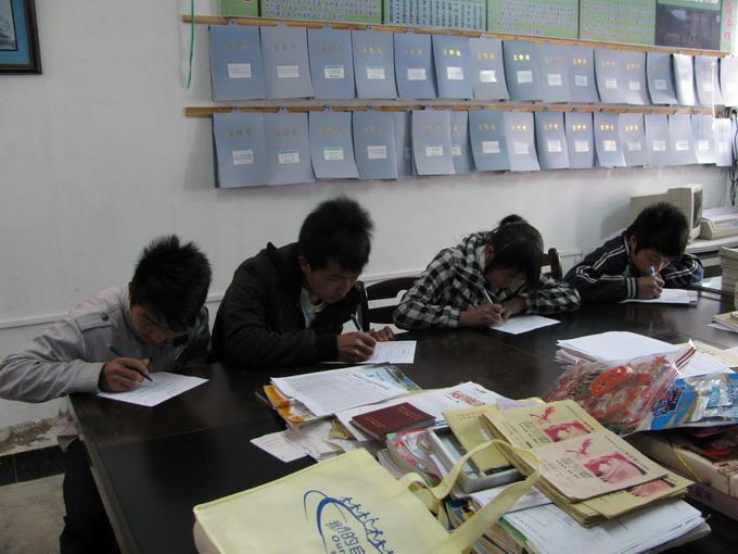 图书室应该是咱们OFS的一个项目吧,网站上有一些介绍,那些图书室的书是咱们募捐的,我们去主要是看看学校图书室的使用情况和需求,这次去的两个学校,松柏学校相对使用的更好一些,他们的图书室有一个老师专门管,还有大孩子轮流去“值班”,因为孩子们没有阅览室,他们每天可以把书借回家看,只需要登记一下姓名、班级、书名及书价等就可以借了,没有严格的还书期限,初中的孩子对书的兴趣更浓一些。