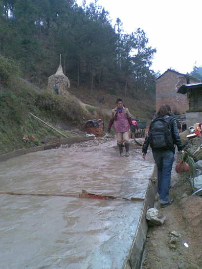 3月19日,我们一行八人又来到了报京乡松柏学校,这一次唐校长如约而至。他自己将受助孩子和待助孩子的家按远近分为四组,并不时告诉我某个孩子的特殊情况,这种细心和亲和力让我钦佩。我们很快便出发走访,今天的道路没有那么难走,我和Lily一边听袁老师介绍山里、路边的植物及他们家乡的特产风俗,一边走往各个孩子的家。在这天的家访中,一个孩子的家庭给我留下了很深的印象。他与父母住,母亲是智障人士,失去生活自理能力,父亲在乡里做零工,家里没田没牲口,这个孩子先天性手脚畸形,视力很弱,由于没钱看病,现在也不知道是什么原因。听邻居讲,这个孩子十分懂事,在家能照顾母亲,老师也说即使只能靠听上课,他依然很认真,而且对数学很感兴趣。但是从这个孩子见到我们开始就不停的叹气,这让我们都感到很揪心,小小年纪承载了太多的压力,以至于叹气都成了他的行为习惯。对于这样的孩子,除了给他物质上的帮助,精神的力量似乎更重要,但具体怎么给予是需要我们每个人都去思考的。