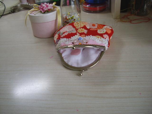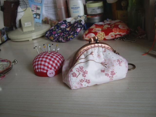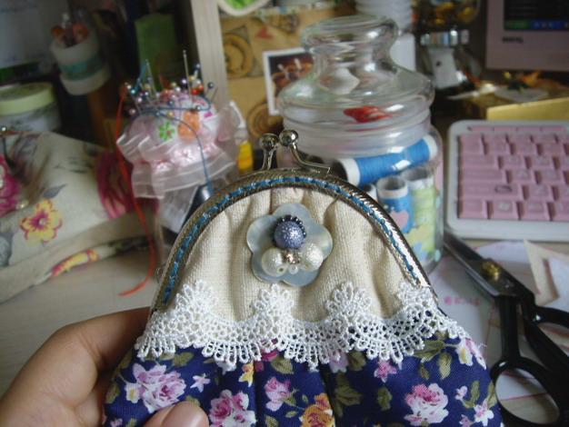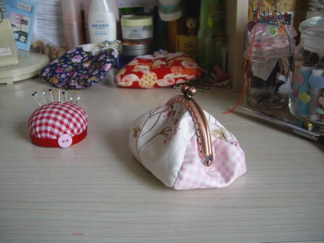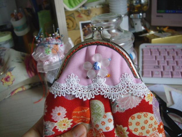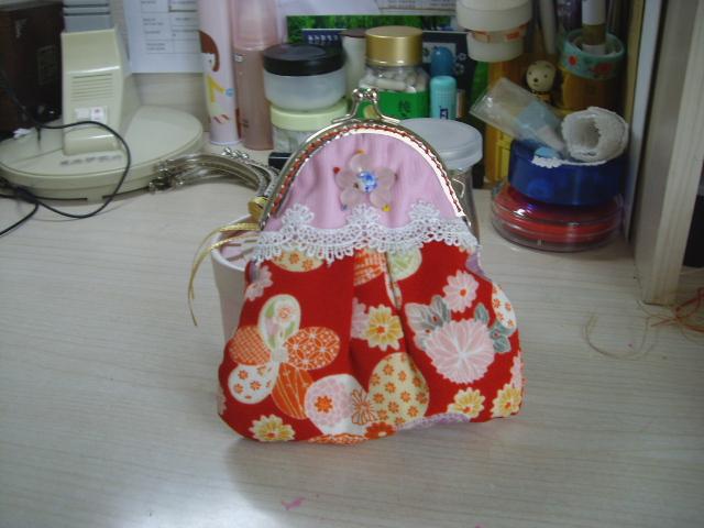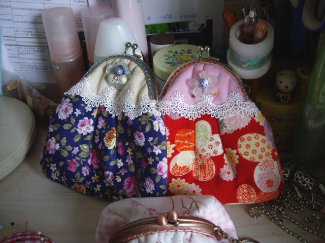 材料:红色的为和服绉布,蓝色的是棉布,8.5cm的口金 d^Zo35X
