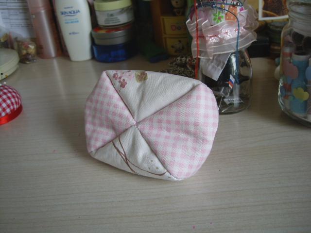 红色的珠花是一颗一颗缝的,当中是一颗青花瓷~ BCBEX&0hk{