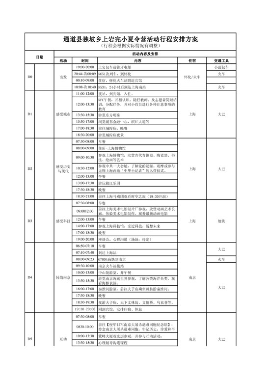 2、夏令营活动正式开始(即到达上海后),每组增加2名志愿者,负责跟踪,志愿者可根据时间安排,每天可以更换;