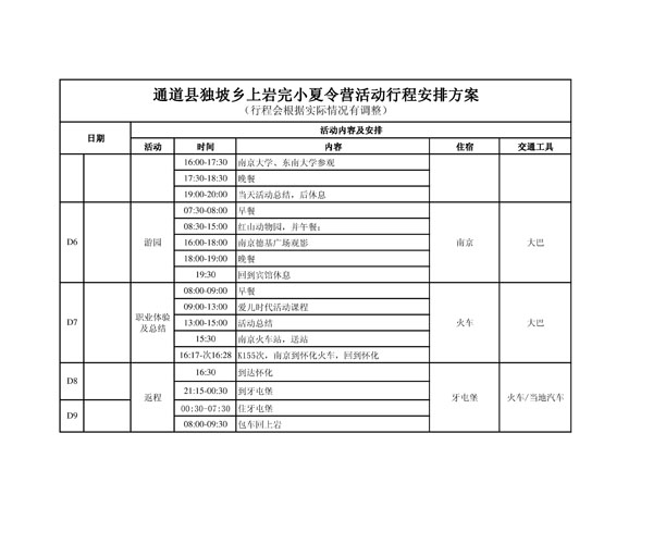 湖南怀化通道县独坡乡上岩完小夏令营活动计划