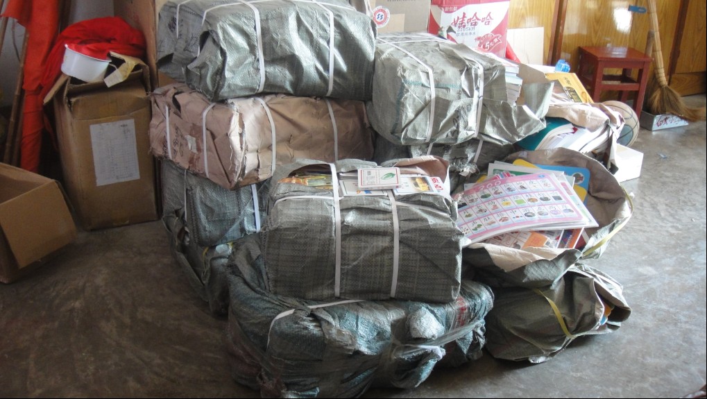 2011年6月30日,几经周折,底土小学和马马小学的十二件图书运到白云中心校。
