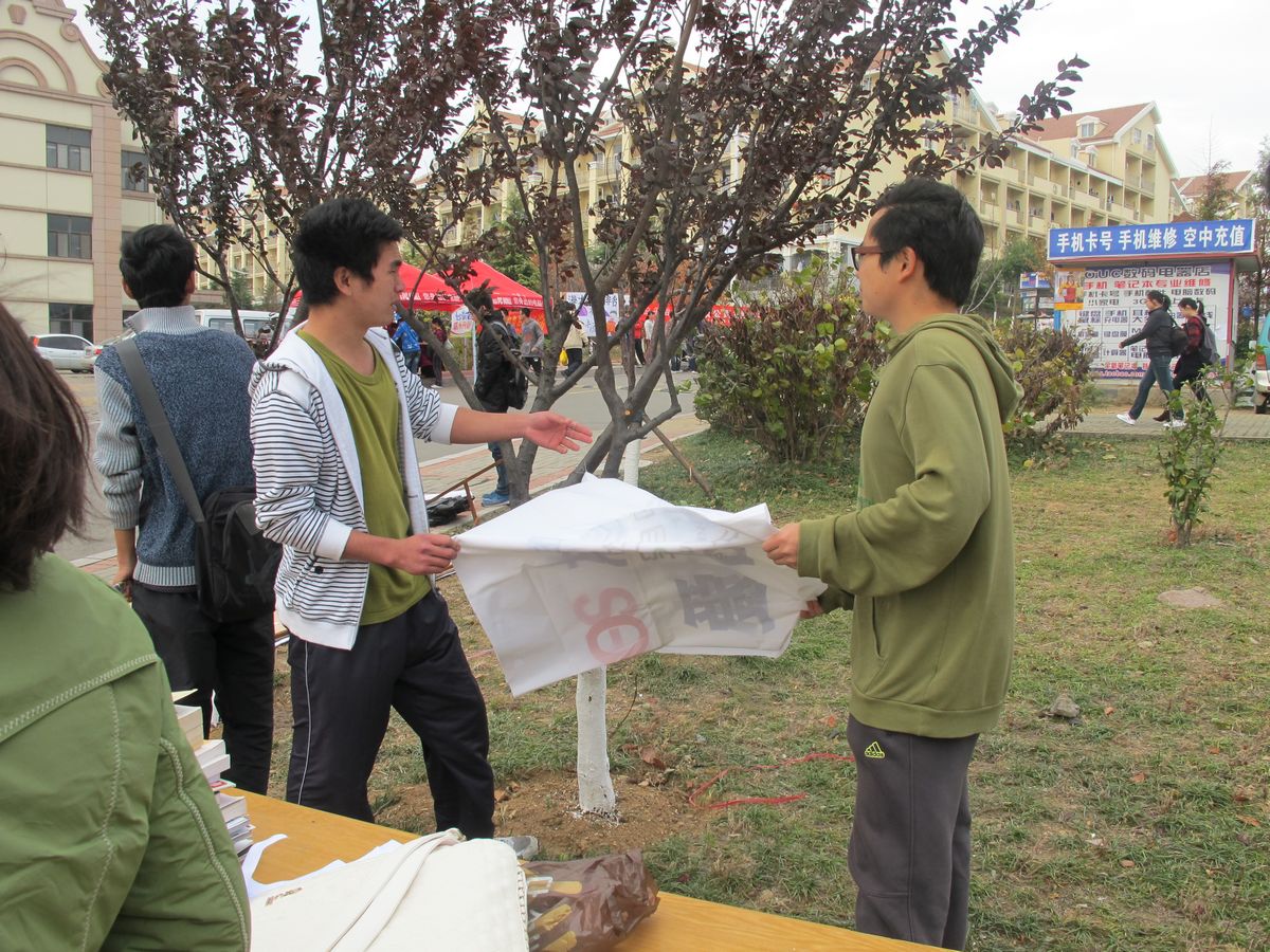 当到了活动的实施阶段,也就是募捐阶段,一开始的问题可能就是本来预计能到的OFS的一些宣传物品,这里出现了差错,这直接影响了我们的宣传,还有本来募捐时应该有的OFS的书签也改成了普通的临时买的书签,这其中有我的错误,沟通不够。然后我们发出的传单上由于负责人的失误,印错了一个号码,所幸还有一个是正确的。不过活动中虽然有点坎坷,也总算是进行下去了,也取得了一定的成果。
