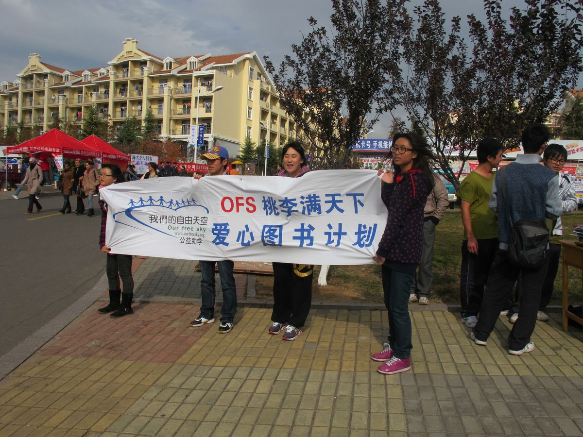 11月的青岛,在中国海洋大学内悄悄挂起了OFS的宣传横幅,爱心捐书活动正式拉开序幕。