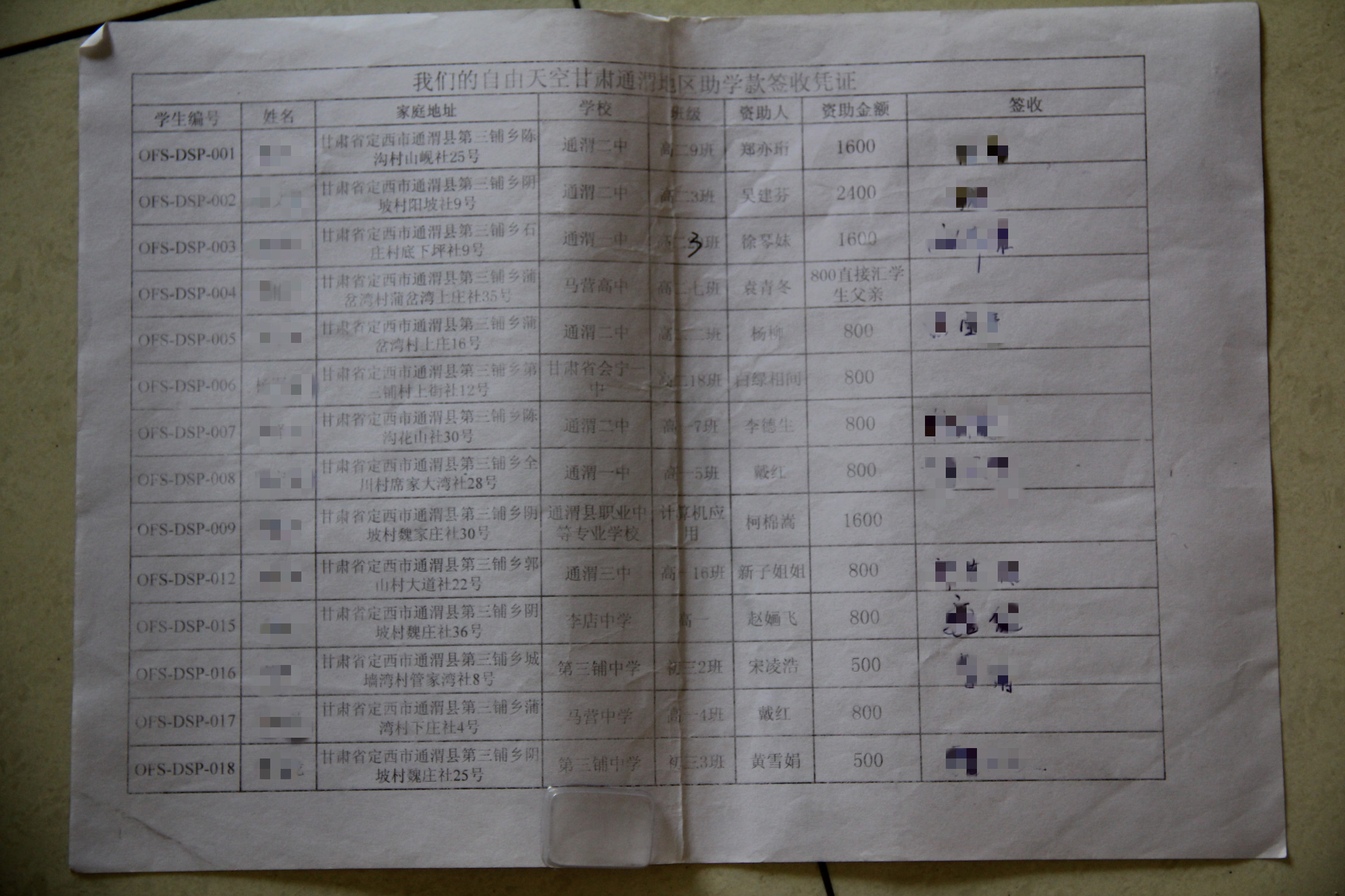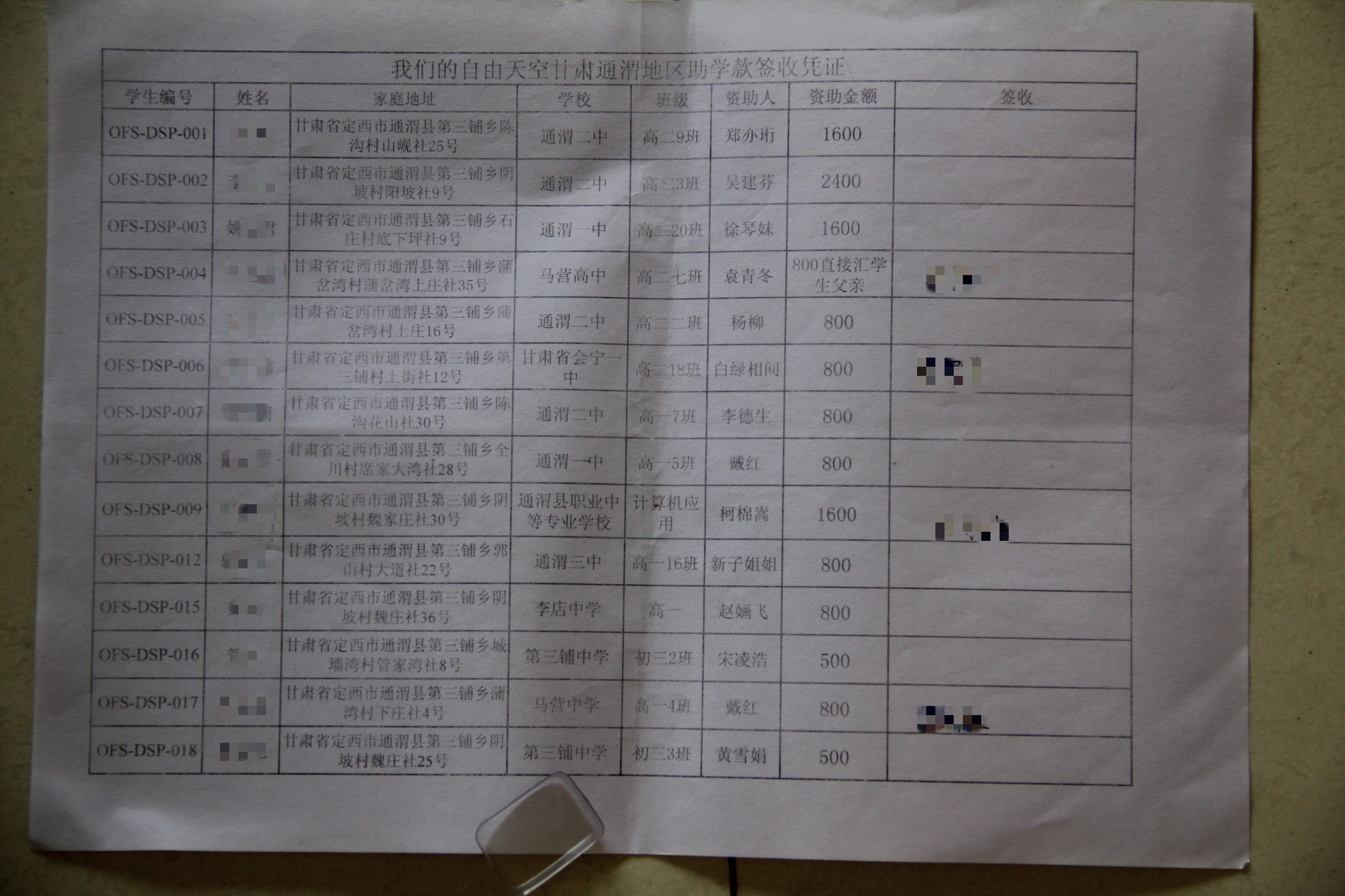 [公 示]2012年春季甘肃通渭助学点助学金发放清单公示 [复制链接]