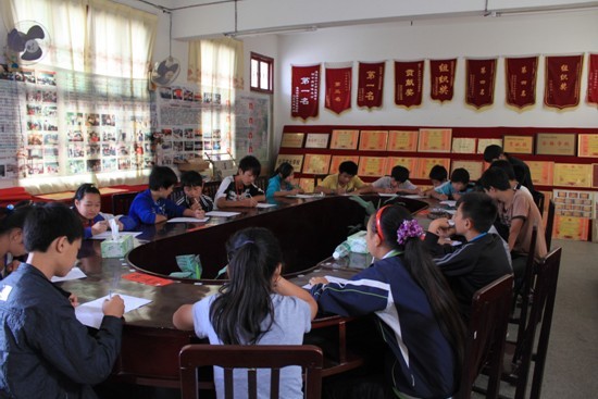 苦:从16号大家从四面八方到达木瓜乡集合,17号到19号三天的走访,每天早出晚归,吃不定时,路途的辛苦,让大家疲惫不堪。特别是去上岩完小的路,就是一路颠簸,我和周芹还苦中作乐,一旦发现美景,还要求师傅停车让我俩咔嚓两张。另外一对,情况更惨,一路体验凌霄飞车以及五连发卡弯,两位女队员连吃饭的力气都没有,倒床就睡了。很佩服队长周芹,一路从凤凰走访过来,每天的工作仍然精神奕奕,简直是精力旺盛。支教老师的生活基本上都已慢慢步入正轨,生活条件虽不尽人意,但踏上了支教这条“不归”路,再苦再难他们也会坚定不移地走下去。