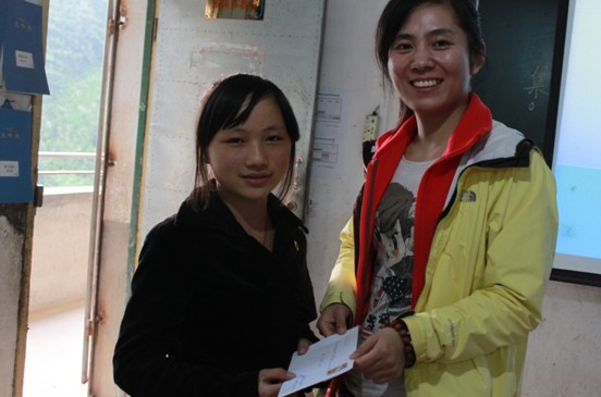通道四中——董申宇、汤如冰、汤婷;回访学生,发放助学金