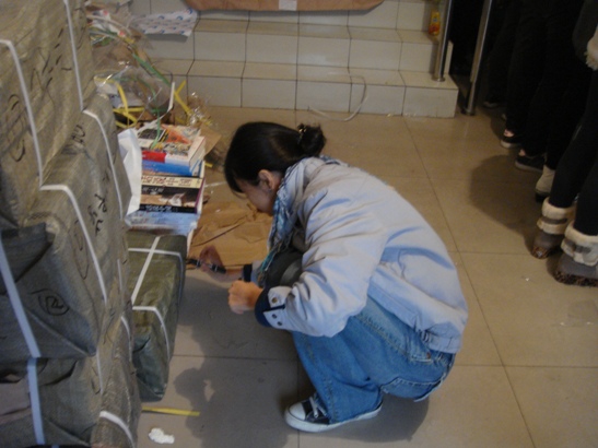 11月3日早上9点,志愿者们陆续赶到了王四营图书批发市场。在这里志愿者们将为捐赠予湖南省娄底市新化县的维山乡中心小学、石冲口镇中心学校和化溪中学的图书盖上OFS的印章。