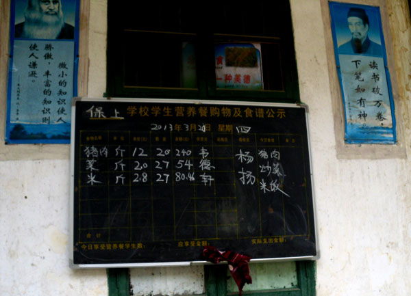 3.18下午坐3个小时左右的车程到达羌圩中学,晚上在多媒体教室回访的两个男生,学习意愿不强,不愿与陌生人沟通,觉得外出打工最起码可以锻炼身体。晚上我们一行人就住于女生宿舍,她们则去老师的宿舍打地铺。 3月19日 羌圩中学/那良小学/羌圩中心小学早上6点学校广播声响起,注意到操场板报栏上方的标语“富不读书纵有银钱身何贵,贫而好学虽无功名志气高”对联,看看操场貌似锻炼的人还不多,慢跑了两圈,学生渐渐多起来,开始早操,有个同学可能因为匆忙穿的拖鞋,跳跃运动时鞋子都要踢飞了。食堂的早餐貌似比较丰盛…8点多在学校对面吃早餐,去中学对面的那良小学,环境非学简陋,泥泞不堪的操场就是孩子们的游乐场,