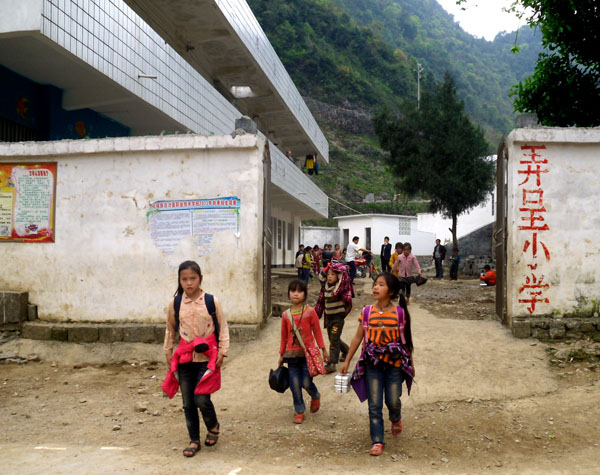 颁奖后摩托车老师载我到弄呈小学时,正值周六放假,学生们一个个走出校门往家赶路。