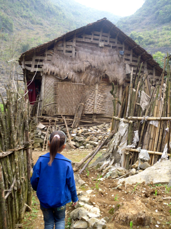 3.20下午,家访弄腾的两个学生家。校长开车20分钟左右,把我们送到山脚下,翻山1小时多,终于到达孩子的家里,都说穷得家徒四壁,可连这四壁都是就地取材的茅草做的。