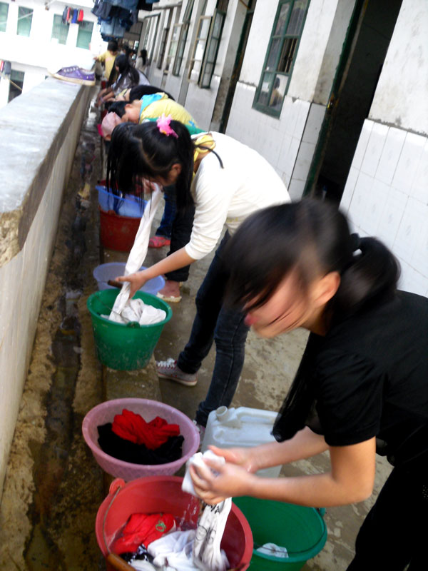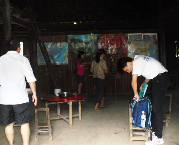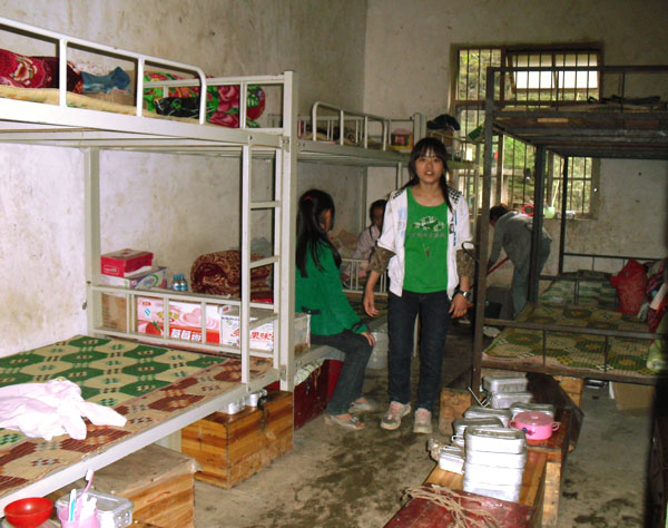 宿舍兼饭堂,部分低年级的同学和姐姐、哥哥们在一起吃饭。