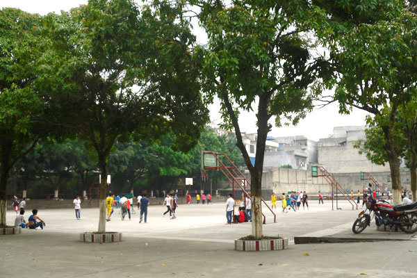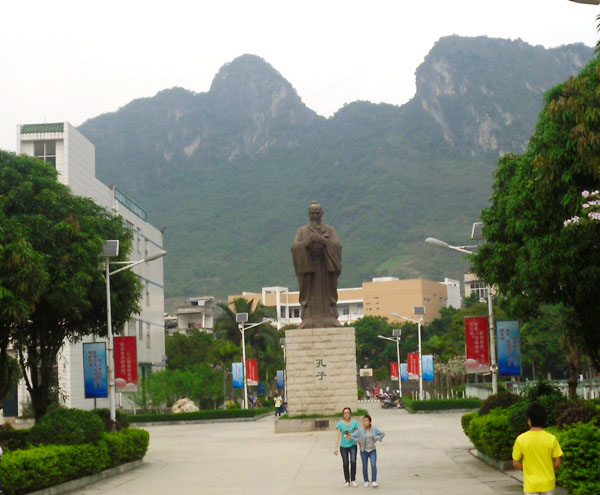开朗健谈的许同学,带我参观了她们学校,孔子雕像座落在校内中央,正当晚饭时间学校的蓝球场、足球场还有不少同学在活动。