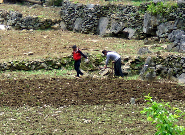 一头牛或猪要相当于2个成年人的饭量,因而有些家庭并没有饲养家畜,犁地只能两人合力完成。