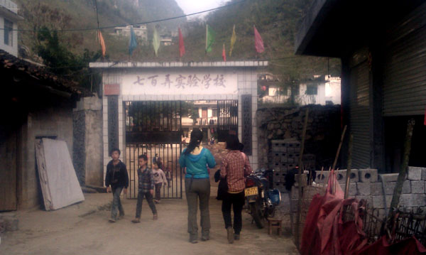 3月20日 七百弄实验学校弄者,四周高峰环绕的深洼地也。有人调侃说,七百弄“金木水火土”五行具缺,唯独不缺石头。喀斯特地貌的特点是石多土,这里能且仅能种玉米。