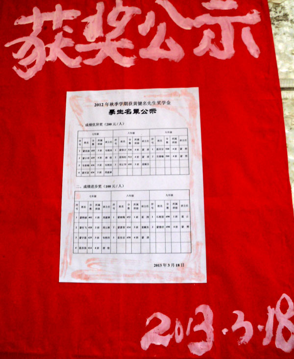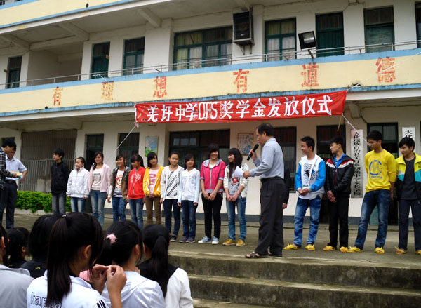 下午返回羌圩中学,举行奖学金颁发仪式,每个领奖时,下面学生列队里便传来阵阵笑声,我问旁边的同学笑什么,他们只是笑而不语,再颁…再笑…