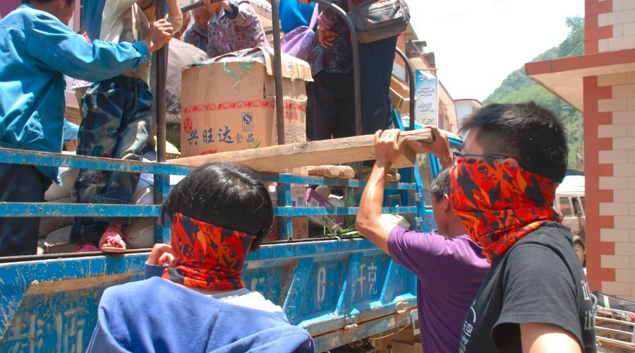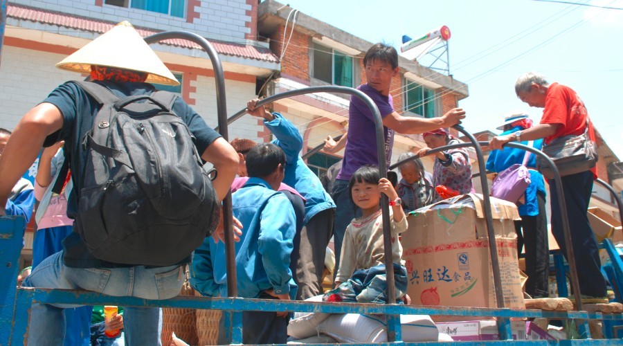 平时咱们的志愿者老师也会搭载这车回村,给几个背影