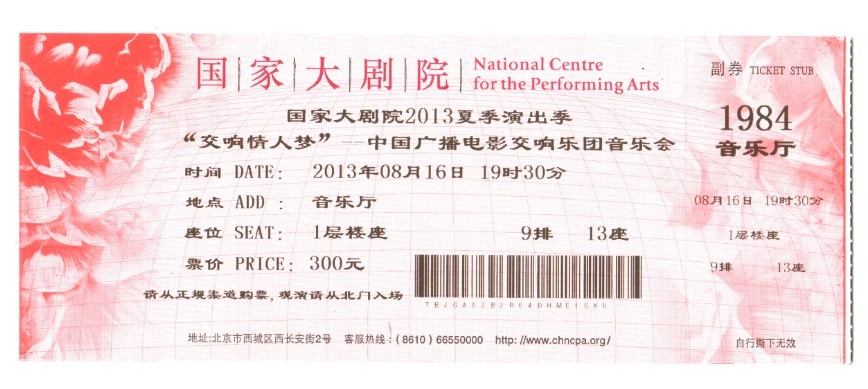 国家大剧院今晚音乐厅音乐会OFS赠票(20130816) [复制链接]