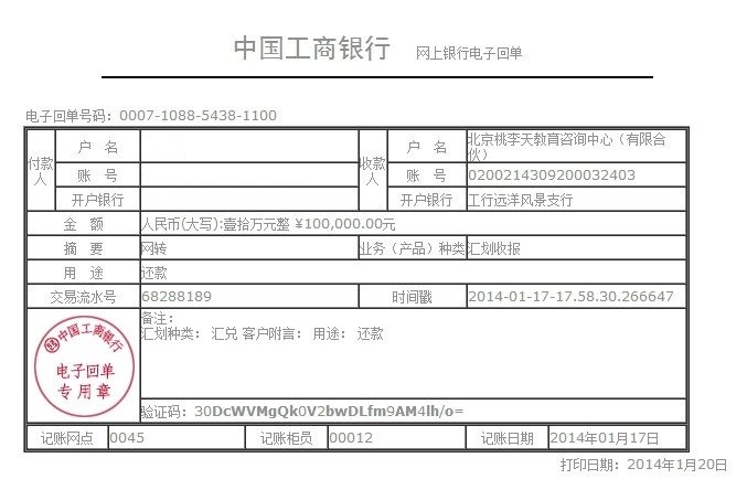 收到赵子威及其朋友赠款人民币(大写):壹拾万元整 ¥100,000.00元,用于高中奖学金项目及代课老师支持等。 &T?RZ2