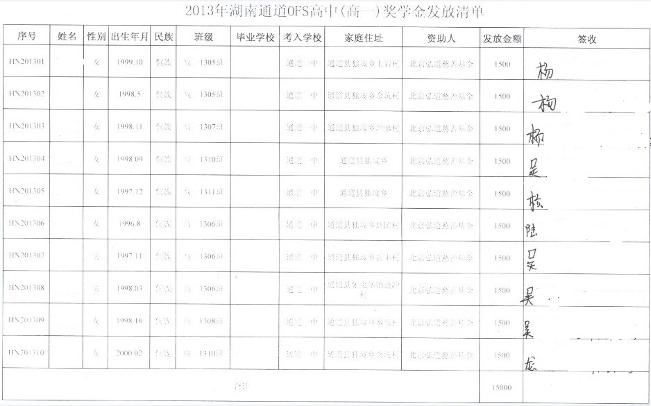 [公 示]2013年湖南通道OFS高中(高一)奖学金发放 [复制链接]