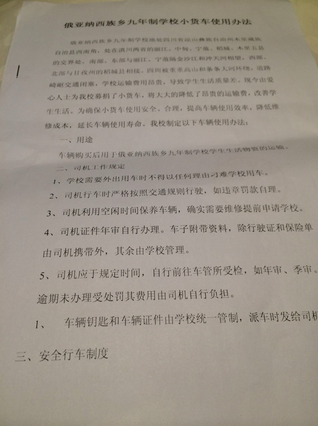 [公 示]四川省木里县俄亚乡九年制学货车购置完成 [复制链接]