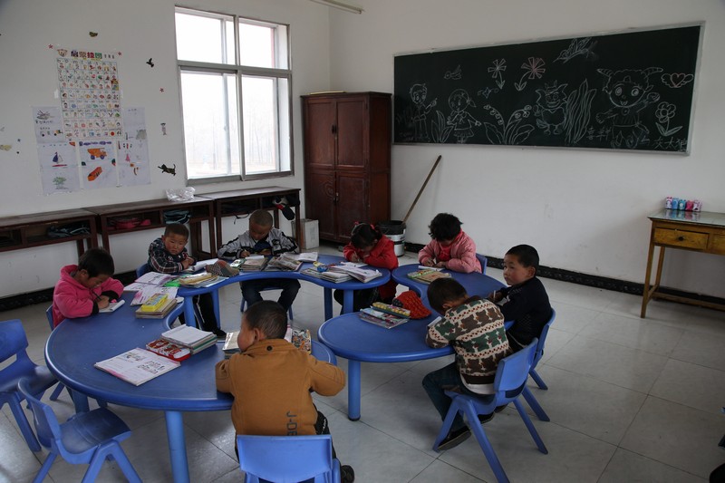 (幼儿园的孩子,在已经空置的村小学上课。这个村幼儿园有一个老师9个孩子,那天刚好有个孩子没去上学)