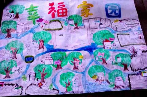 幸福家园,书本是中间的水源,第一个词语我写了诚实。之后大家一起写了勇敢、善良、有爱……