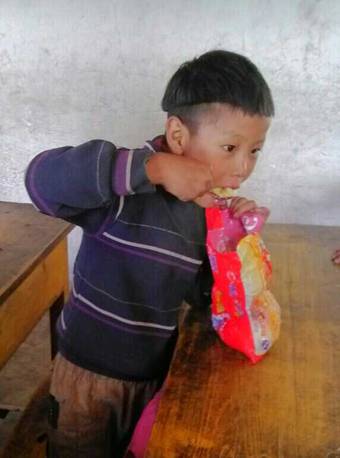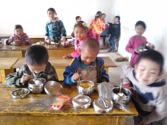 村里没有菜卖,我们吃的蔬菜都是孩子每天从家里带的。带什么我们就吃什么