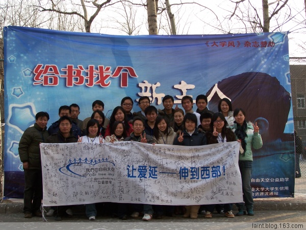 ATewdq[C 2008年4月天津大学爱心捐书活动 ^w}Ib']X au~gJW- Annie.922:加入OFS以来让你感触最深的人或事情是什么? l{{ #tW Hauny:让我最感触的人是OFS的前辈之一—— terresa,是她让我更加明白了什么是坚强,即使自己身体不是太方便,但是也很坚强很坚持的做公益这件事,是真正的想多尽一份心来回报这个社会,能够尽可能的用自己的力量帮助一些需要帮助的孩子们。希望她能够一直坚强的——活着,继续自己的梦想。