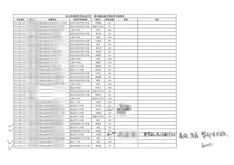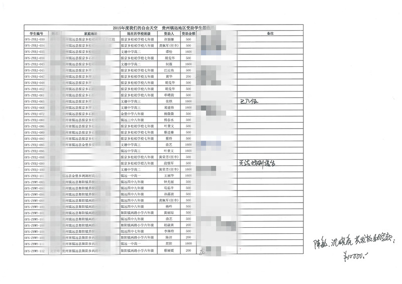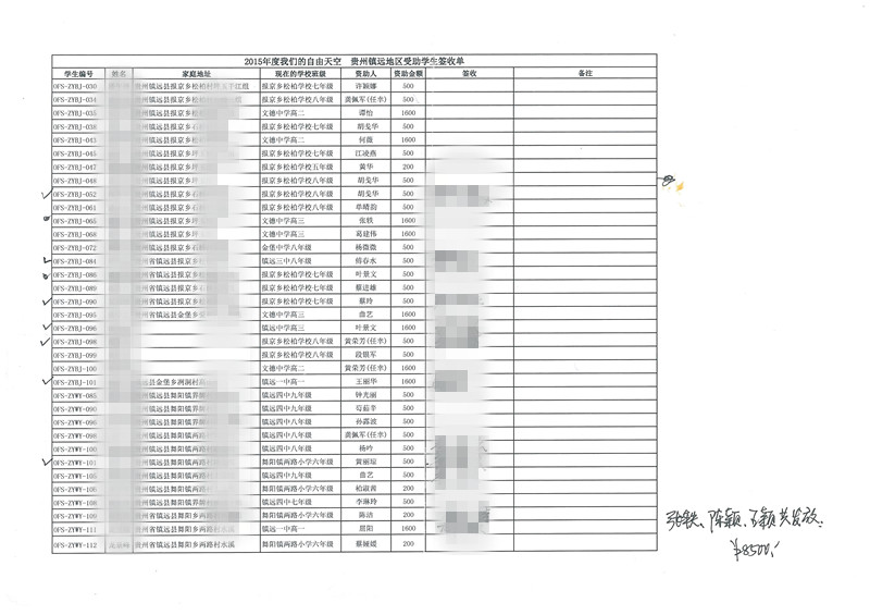 [公 示]2015年3月贵州镇远助学款发放公示 [复制链接]