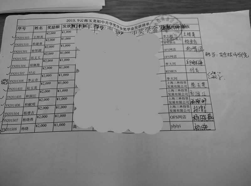 [奖学金]2015.9 云南玉龙助学点初中升学奖学金发放公示 [复制链接]